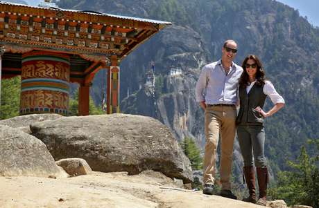 O Duque e a duquesa de Cambridge visitaram nesta sexta-feira um monastério budista na encosta de uma montanha do Butão, indo mais longe que o pai do príncipe William, Charles, que durante uma visita de 1998 interrompeu a caminhada para pintar uma aquarela.